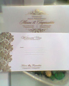 card and sampul.. haha rasa pedih mata tgk pic ni..sgt lah xclear.. yg atas card, bawah sampul.. we chose white+gold.. safe n universal colour gitu..
